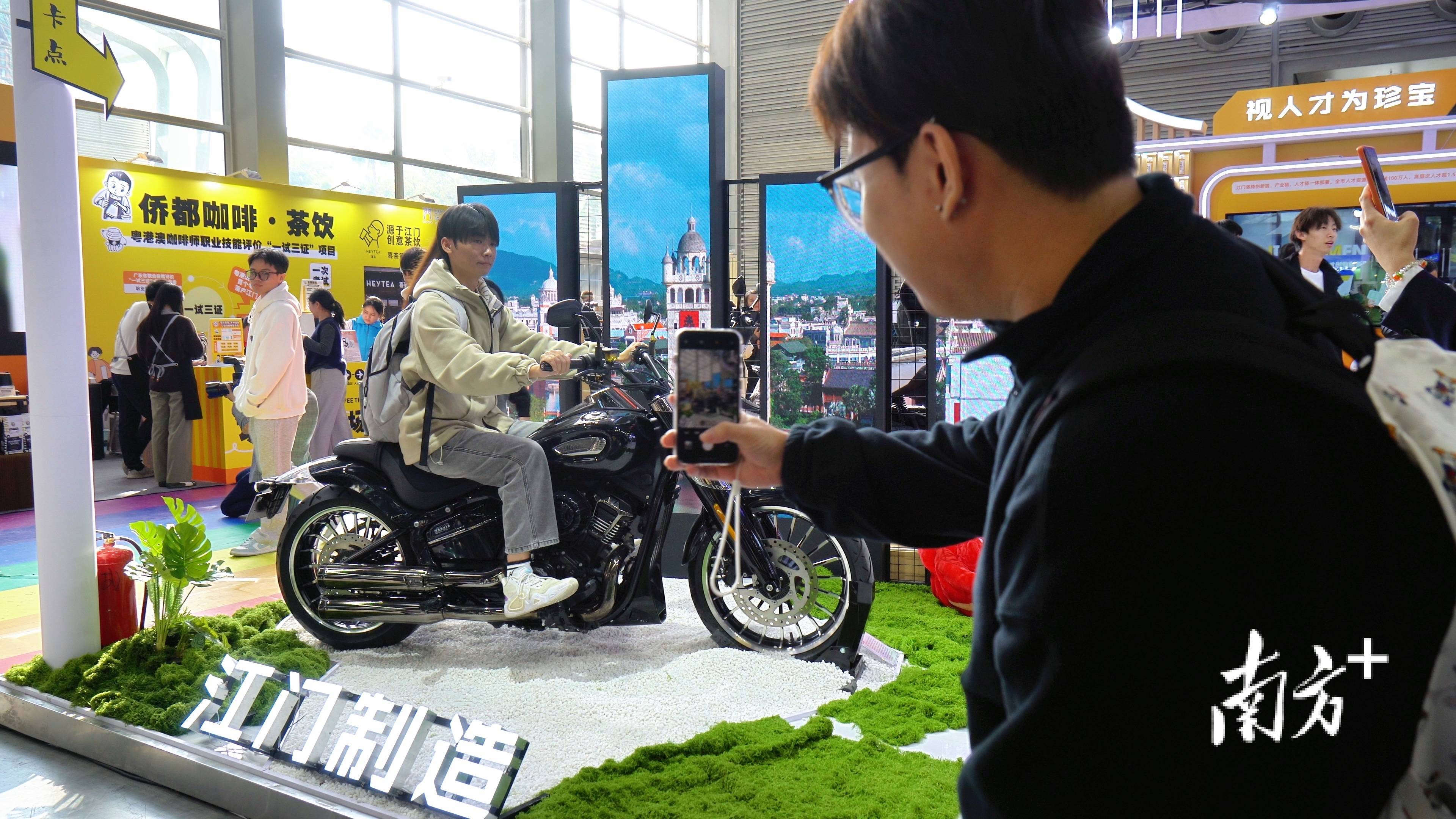 建雅摩托车展出的喷鼻帅机车更是自带“吸睛buff”,亮眼的配色霎时抢占视线,成为展区“顶流打卡点”,求职者们纷纷上前合影留念,不少人拍完照便曲奔企业聘请征询台。“本来就关心高端配备制制范畴的岗亭,看到这款机车就面前一亮,深切领会后才晓得江门的配备制制财产这么成熟。